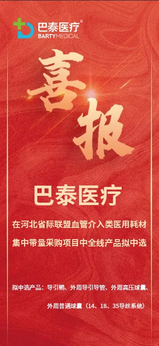 喜報丨巴泰醫療在河北省際聯盟血管介入類醫用耗材集中帶量采購項目中外周全線產品擬中選